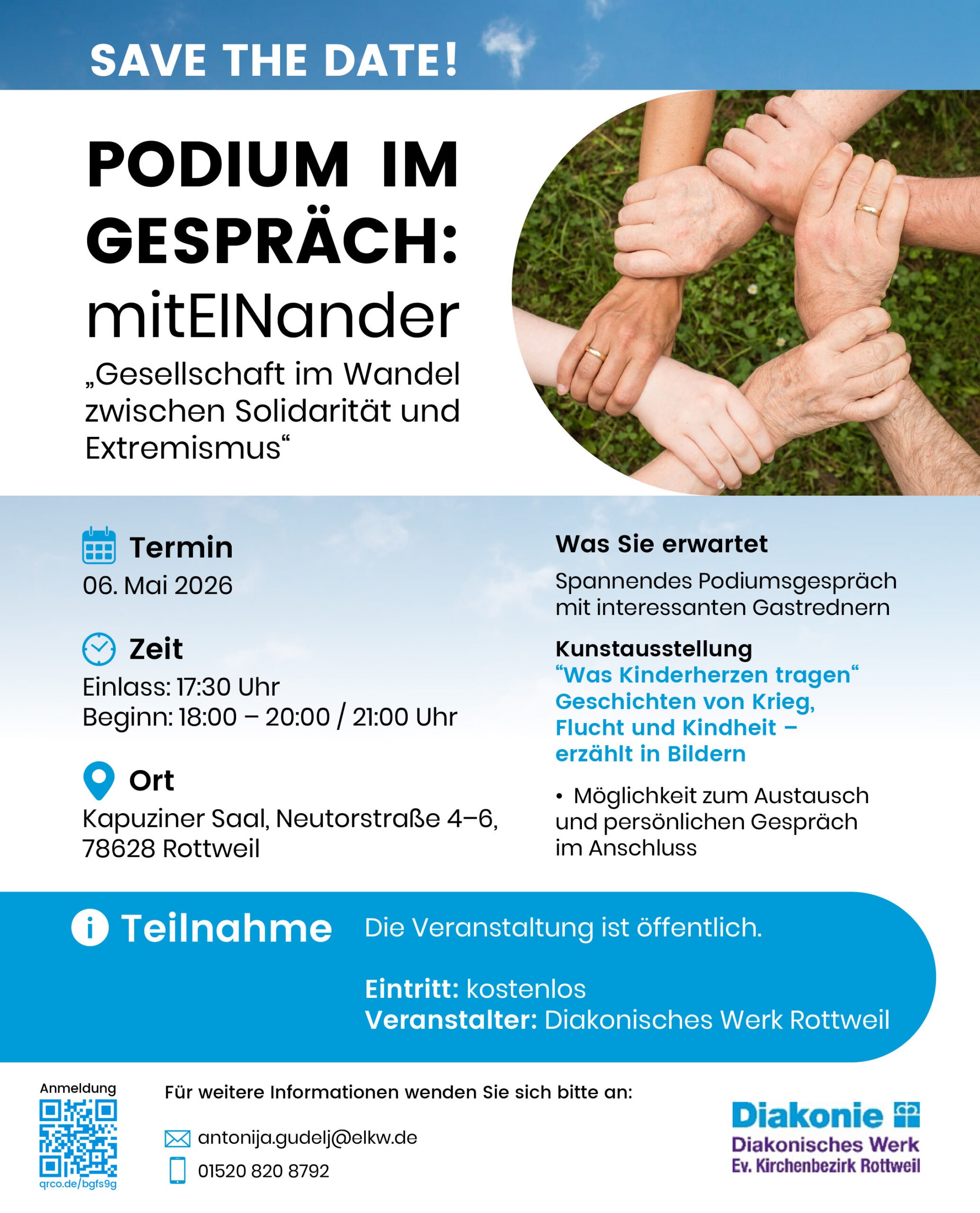 An diesem Abend werden verschiedene Gäste und Referierende aktuelle Themen wie Krieg, Flucht, (Rechts-)Extremismus sowie Entwicklungen in Arbeitswelt und Wirtschaft beleuchten und gemeinsam diskutieren. Gleichzeitig möchten wir darauf aufmerksam machen, wie wichtig in diesen Zeiten Solidarität, Toleranz und Empathie sind – ebenso wie der gesellschaftliche Zusammenhalt, auch mit Menschen unterschiedlicher Meinungen, sowie der Erhalt zivilgesellschaftlicher, ehrenamtlicher und kirchlicher Strukturen.