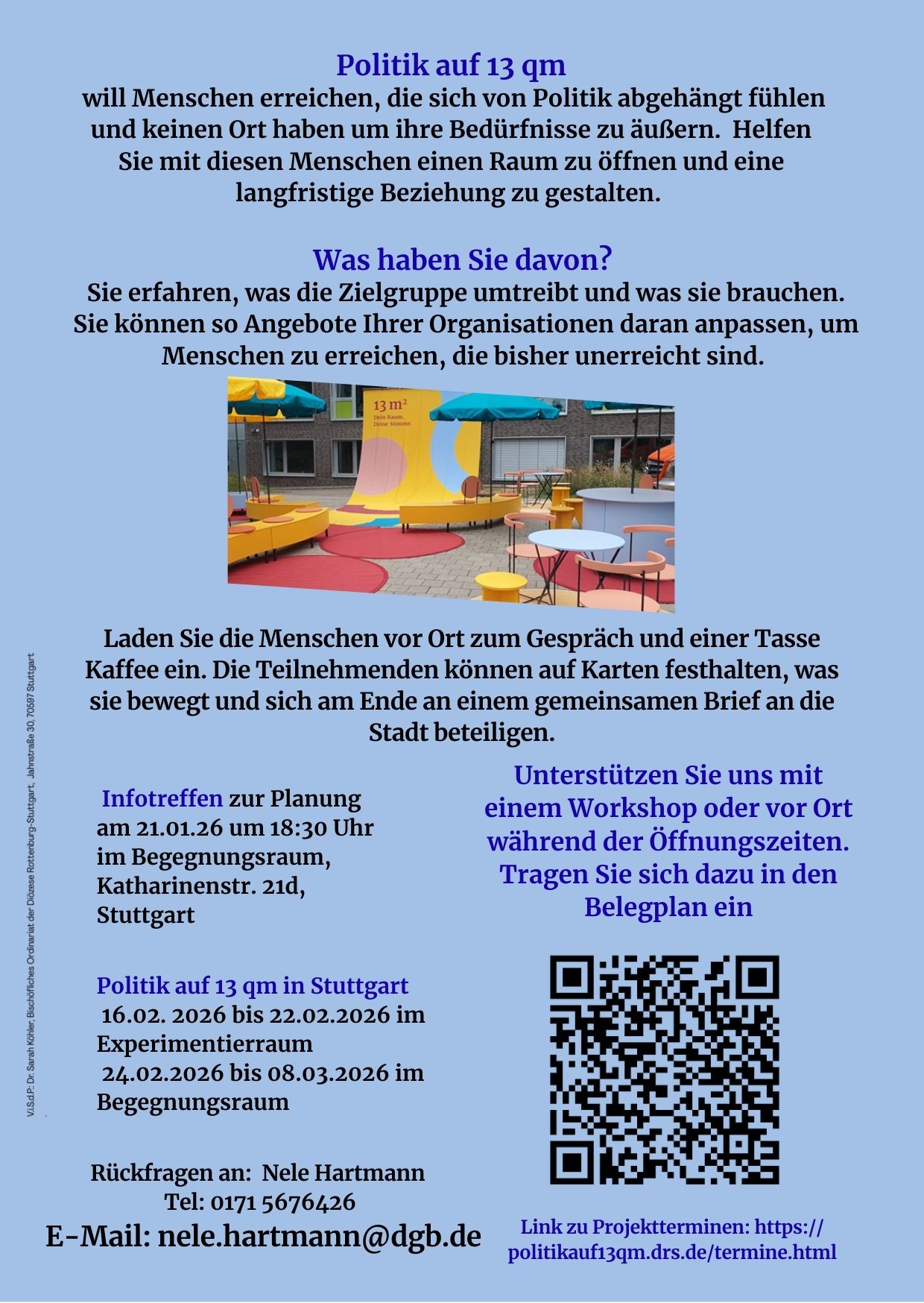 Politik auf 13 qm in Stuttgart findet vom 16.02. 2026 bis 22.02.2026 im Experimentierraum