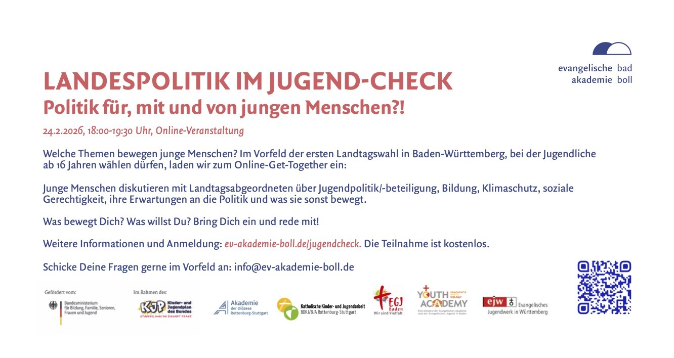 Weitere Informationen und Anmeldung: www.ev-akademie-boll.de/jugendcheck.